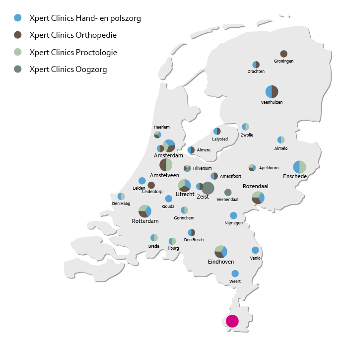 Xpert Clinics Hand- en polszorg heeft vestigingen, satellietvestigingen en poliklinieken.